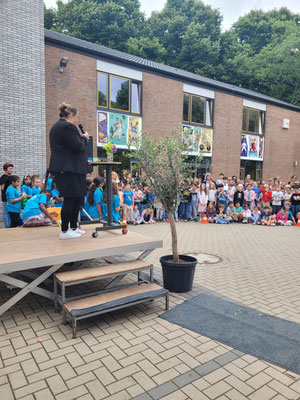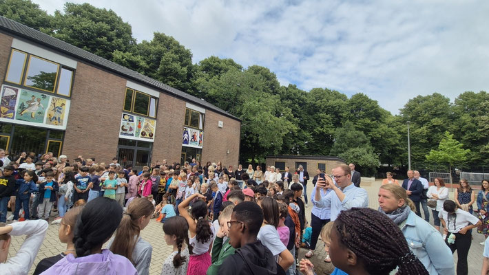 Am heutigen Freitag, den 27. Juni 2025, haben wir Stefanie Bauer, unsere langjährige Schulleiterin der Albert-Schweitzer-Gemeinschaftsgrundschule Geldern, mit vielen Wegbegleiterinnen und Wegbegleitern in den Ruhestand verabschiedet. Nach fast 40 Jahren im Schuldienst, davon neun Jahre als Leitung unserer Schule, beendet sie ihre Schullaufbahn.