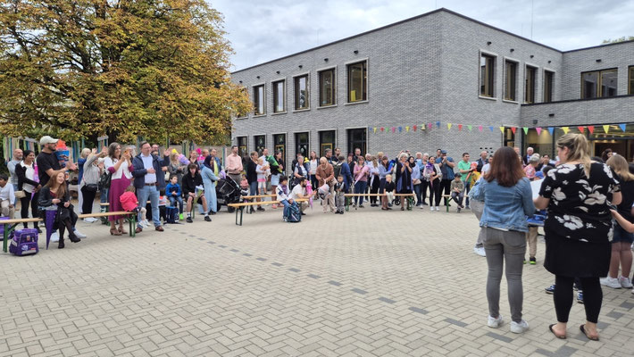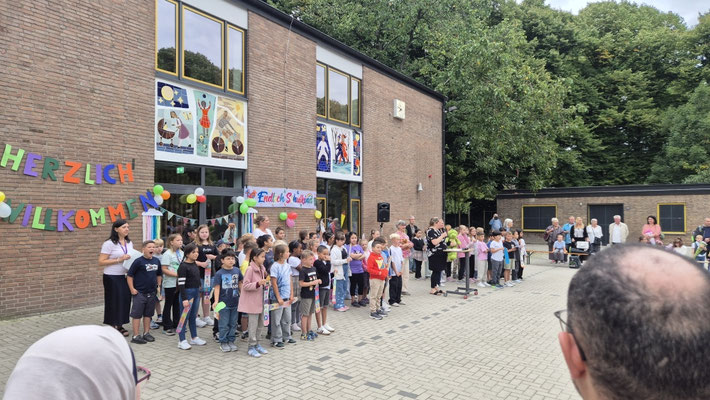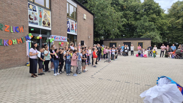 Ein besonderer Dank gilt auch unseren Drittklässlerinnen und Drittklässlern, die als Patenkinder die neuen Schulkinder mit zwei Liedern begrüßt haben und sie nun begleiten. Mit ihrer Unterstützung und Freundschaft fällt der Start an unserer Schule gleich viel leichter.